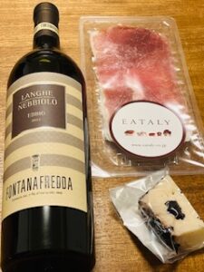 上記写真は同店で購入したフォンタナフレッダのランゲ・ネッビオーロ2022、オッチェリ・アル・バローロ、エスプーニャ・ハモンセラーノ・トラディショナルです。
