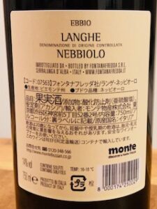 今回はフォンタナフレッダが造るランゲ・ネッビオーロ2022を抜栓しました。