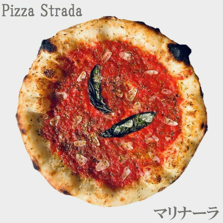 「チーズがない分ペロリと食べられちゃうそんなピッツァ。ガーリックがしっかり効いていて、ガーリック好きにはたまらない1枚。」(ピッツァストラーダ公式ページ(楽天市場内)から引用。こちら)