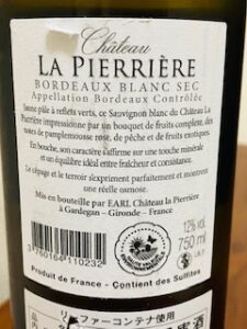 ボルドーのシャトー・ラ・ペリエール・ソーヴィニヨンブラン2022の感想